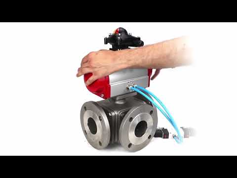 Ball valves Elephant BV3232P(4pc)-FP-3WL-F-ISO-H 16 bar full bore, flanged, body - stainless steel SS316, ISO flange F03/F04-F10/F12, square 9x9-19x19, with pneumatic drive PA-DA double acting, pneumatic valve 4V320-8 220V and LSU AP