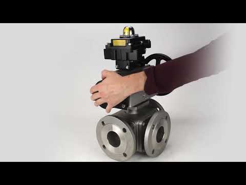 Robinets à boisseau sphérique Elephant BV3232P(4pc)-FP-3WL-F-ISO-H DN100 16 bar passage intégral, à brides, corps - acier inoxydable SS316, bride ISO F10/F12, carré 19x19, avec double actionneur pneumatique PA-DA-105-1 actions et BKV APL-410N EX