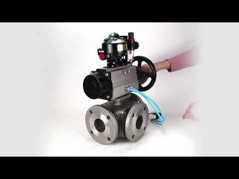 Ball valves Elephant BV3232P(4pc)-FP-3WL-F-ISO-H DN100 16 bar full bore, flanged, body - stainless steel SS316, ISO flange F10/F12, square 19x19, with pneumatic actuator PA-DA-105-1, pneumatic distributor 4V320-10 220V, LSU APL-510N EX and ATU AFC2000