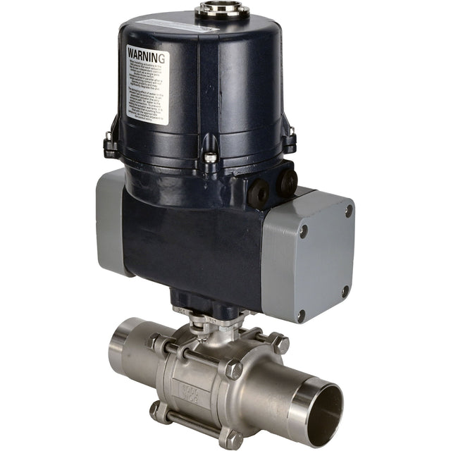Ball valves Elephant BV3131P(3pc)-FP-W-ISO-H LONG full bore, welded, body - stainless steel SS304, seal - PTFE, with electric quarter turn actuator Elephant QTSA-N-EM-O0-220VAC