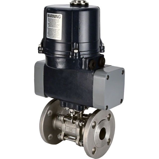 Ball valves Elephant BV3232P(3pc)-FP-F-ISO-H full bore, three-piece, flanged, body - SS316 stainless steel, seal - PTFE, with electric quarter turn actuator Elephant QTSA-N-EM-O0-220VAC