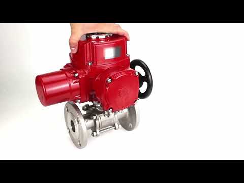 Robinet à boisseau sphérique en acier inoxydable Elephant BVFPT.304.180 en trois parties, matériau du corps - acier inoxydable SS304, joint - PTFE, à bride, passage intégral, actionneur électrique quart de tour Elephant QT-W (M) EX 220 V