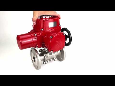 Robinet à boisseau sphérique en acier inoxydable Elephant BVFPT.304.180 en trois parties, matériau du corps - acier inoxydable SS304, joint - PTFE, à bride, passage intégral, actionneur électrique quart de tour Elephant QT-W (M) EX 380 V