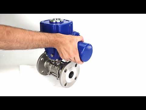 Robinet à boisseau sphérique en acier inoxydable Elephant BVFPT.316.180 en trois parties, matériau du corps - acier inoxydable SS316, joint - PTFE, à bride, passage intégral, actionneur électrique quart de tour Elephant QT-W (M) 380 V