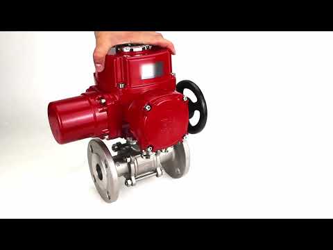 Robinet à boisseau sphérique en acier inoxydable Elephant BVFPT.316.180 en trois parties, matériau du corps - acier inoxydable SS316, joint - PTFE, à bride, passage intégral, actionneur électrique quart de tour Elephant QT-W (M) EX 220 V