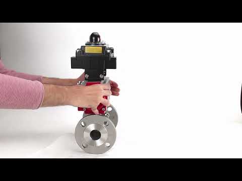 Stainless steel ball valve Elephant BVFPT-ISO,304,180 three-part, body material - stainless steel SS304, seal - PTFE, flanged, full port, pneumatic actuator Elephant DA, limit switch block APL-410N EX