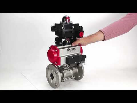 Stainless steel ball valve Elephant BVFPT-ISO,304,180 three-part, body material - stainless steel SS304, seal - PTFE, flanged, full port, pneumatic actuator Elephant DA, pneumatic distributor 4M310-08 220 V, limit switch block APL-410N EX