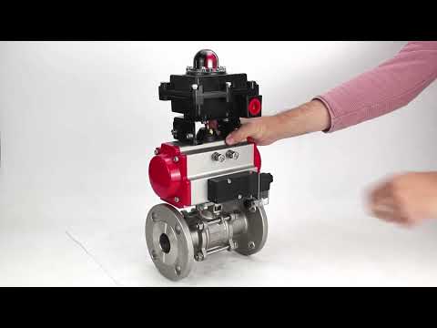 Stainless steel ball valve Elephant BVFPT-ISO,304,180 three-part, body material - stainless steel SS304, seal - PTFE, flanged, full port, pneumatic actuator Elephant SA, pneumatic distributor 4M310-08 24 V, limit switch block APL-410N EX