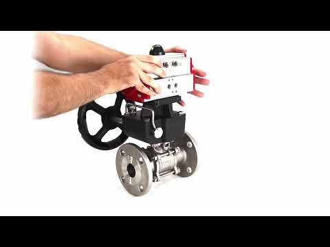 Robinet à boisseau sphérique en acier inoxydable Elephant ksfpt-304-180-da-hdm, matériau du corps - acier inoxydable AISI 304, matériau de la bille - acier inoxydable AISI 304, joint - PTFE, actionné par actionneur pneumatique