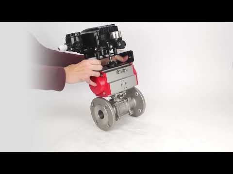 Robinet à boisseau sphérique en acier inoxydable Elephant ksfpt-304-180-sa-yt1000rsi, matériau du corps - acier inoxydable AISI 304, matériau de la bille - acier inoxydable AISI 304, joint - PTFE, actionné par actionneur pneumatique