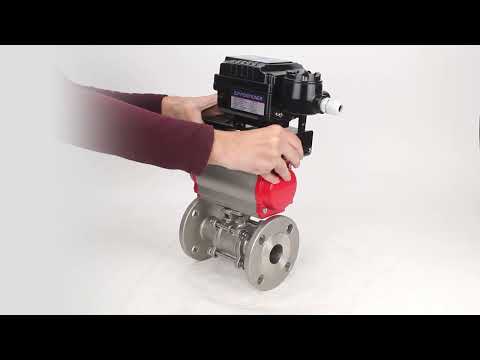 Robinet à boisseau sphérique en acier inoxydable Elephant ksfpt-304-180-sa-yt1000rsn, matériau du corps - acier inoxydable AISI 304, matériau de la bille - acier inoxydable AISI 304, joint - PTFE, actionné par actionneur pneumatique