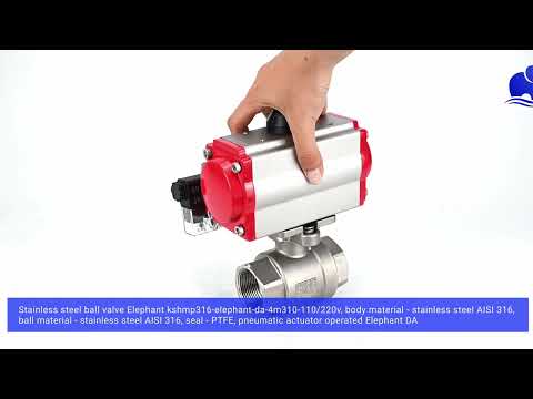 Robinet à boisseau sphérique en acier inoxydable Elephant kshmp316-elephant-da-4m310-110/220v, matériau du corps - acier inoxydable AISI 316, matériau de la bille - acier inoxydable AISI 316, joint - PTFE, actionné par actionneur pneumatique