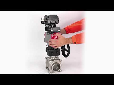 Robinet à boisseau sphérique en acier inoxydable Elephant kshpp-316200-da-yt1000rsi-hdm, matériau du corps - acier inoxydable AISI 316, matériau de la bille - acier inoxydable AISI 316, joint - PTFE, actionné par actionneur pneumatique