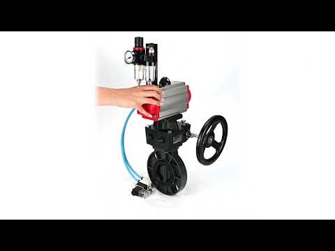 Butterfly valves Elephant WBV4242E-2W-Fb-ISO, body material - UPVC, disc material - UPVC, seal - EPDM, with pneumatic actuator double action PA-DA, pneumatic distributor 4V320-10 220V, ATU AFC2000 and handwheel MON