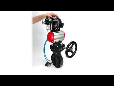 Butterfly valves Elephant WBV4242E-2W-Fb-ISO, body material - UPVC, disc material - UPVC, seal - EPDM, with pneumatic actuator double action PA-DA, pneumatic distributor 4V320-10 220V, LSU APL-510N EX, ATU AFC2000 and handwheel MON