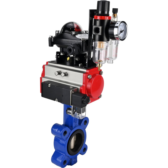 Butterfly valves WBV1616N-2W-Fb-H, body material - cast iron QT450, disk material - cast iron QT450, seal - NBR, pneumatic actuator PA-DA double action, 4M310-08 220V, LSU APL-210N, ATU AFC2000