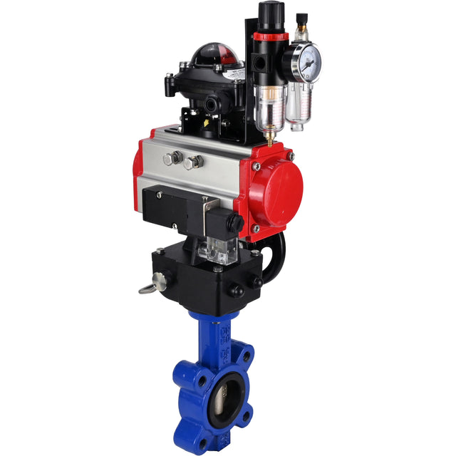 Butterfly valves WBV1616N-2W-Fb-H, body material - cast iron QT450, disk material - cast iron QT450, seal - NBR, pneumatic actuator PA-DA double action, 4M310-08 220V, LSU APL-210N, handwheel MON, ATU AFC2000