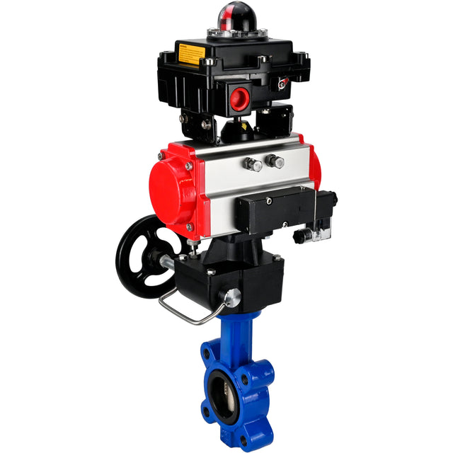 Butterfly valves WBV1616N-2W-Fb-H, body material - cast iron QT450, disk material - cast iron QT450, seal - NBR, pneumatic actuator PA-DA double action, 4M310-08 220V, LSU APL-410N EX, handwheel MON