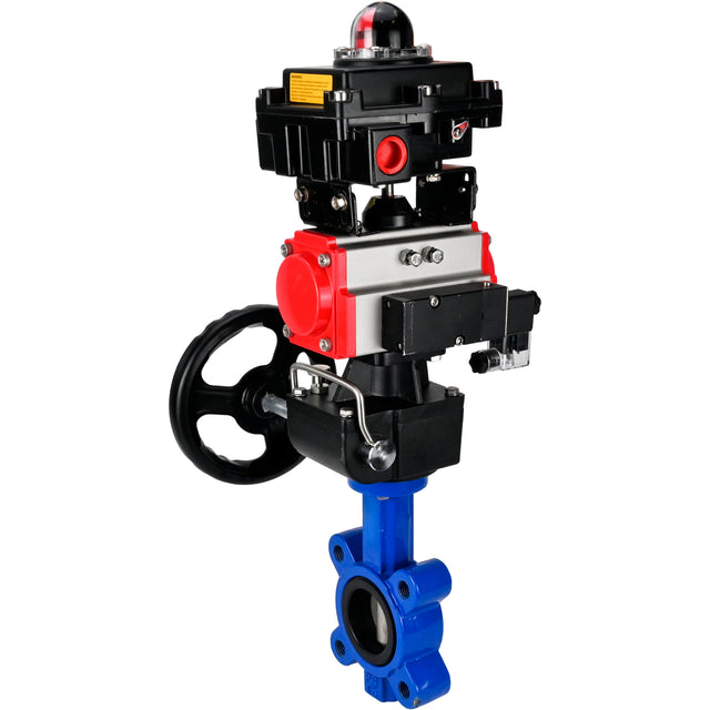 Butterfly valves WBV1631N-2W-Fb-H, body material - cast iron QT450, disk material - Stainless steel AISI 304, seal - NBR, pneumatic actuator PA-DA double action, 4M310-08 220V, LSU APL-410N EX, handwheel MON
