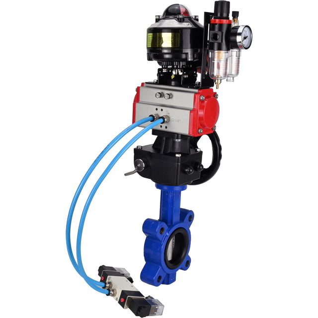 Butterfly valves WBV1631N-2W-Fb-H, body material - cast iron QT450, disk material - Stainless steel AISI 304, seal - NBR, pneumatic actuator PA-DA double action, 4V320-08 220V, LSU APL-510N EX, handwheel MON, ATU AFC2000