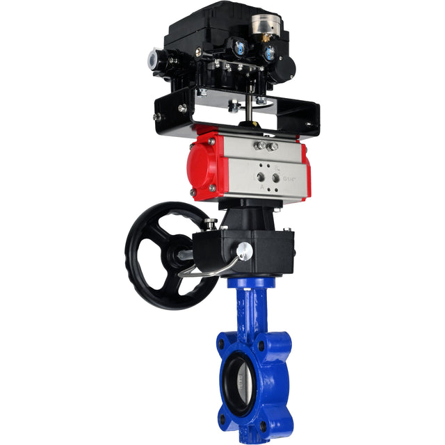 Butterfly valves WBV1631N-2W-Fb-H, body material - cast iron QT450, disk material - Stainless steel AISI 304, seal - NBR, pneumatic actuator PA-DA double action, positioner YT-1000RSN without feedback, handwheel MON