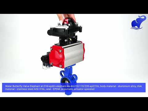 Vanne papillon d'eau Elephant al-316l-epdm-elephant-da-4m310-110/220-apl210n, matériau du corps - alliage d'aluminium, matériau du disque - acier inoxydable AISI 316L, joint - EPDM, actionné par actionneur pneumatique