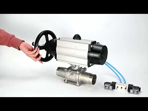 Ball valves Elephant BV3131P(3pc)-FP-W-ISO-H LONG, body material - Stainless steel AISI 304, seal - PTFE / PTFE / Teflon, with pneumatic actuator double action PA-DA-105-1, 4V320-08 220V