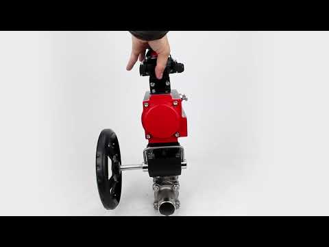 Vannes à boisseau sphérique Elephant BV3131P(3pc)-FP-W-ISO-H LONG DN50-150 passage intégral, corps - acier inoxydable 304, soudé, avec actionneur pneumatique Elephant PA-DA, réducteur Elephant MON et bloc de fin de course APL 210N