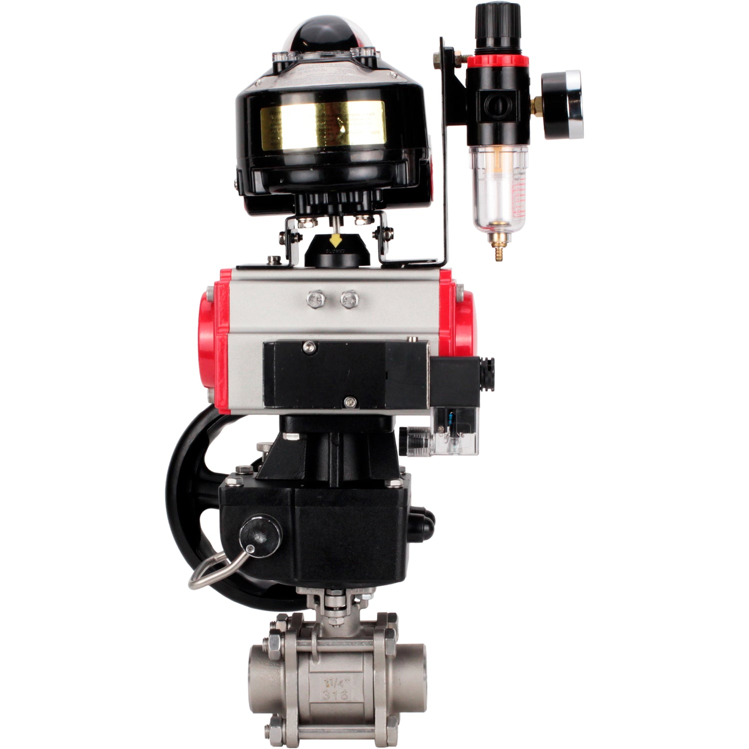Ball valves Elephant BV3232P(3pc)-FP-W-ISO-H WDVF DN15-32 63 bar full bore, 316 stainless steel, PTFE, for welding, with PA-DA pneumatic actuator, pneumatic distributor 4M310-08 24V, LSU APL-510N EX, manual backup for MON, ATU AFC2000