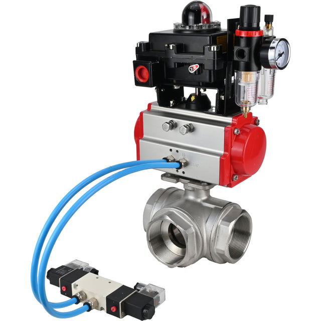 Ball valves Elephant BV3232P(4pc)-SP-3WL-T-ISO-H, body material - Stainless steel AISI 316, seal - PTFE / PTFE / Teflon, with pneumatic actuator with return springs PA-SA, 4V320-10 220V, LSU APL-410N Ex,, ATU AFC2000