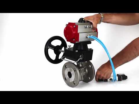 Ball valves Elephant BV3232P(2pc)-FP-F-ISO-H DN15-300 16 bar/16, full bore flanged, stainless steel SS316, seal - PTFE, with double-acting PA-DA pneumatic actuator, with pneumatic distributor 4V320-08 220V, with manual Doubler MON