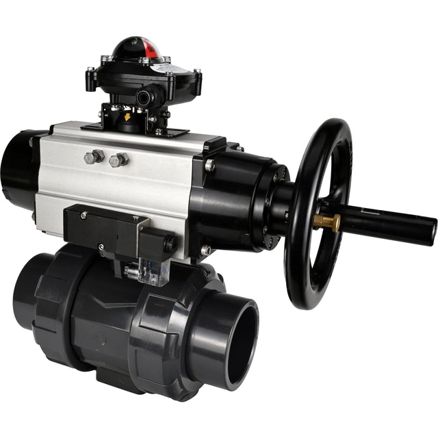 Ball valves Elephant BV4242E-FP-GRM-ISO, body material - UPVC, ball material - UPVC, seal - EPDM, with pneumatic actuator double action PA-DA-105-1, pneumatic distributor 4M310-08 24V and LSU APL-210N