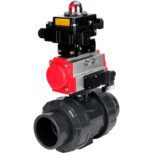 Ball valves Elephant BV4242E-FP-GRM-ISO, body material - UPVC, ball material - UPVC, seal - EPDM, with pneumatic actuator double action PA-DA, pneumatic distributor 4M310-08 220V and LSU APL-410N EX