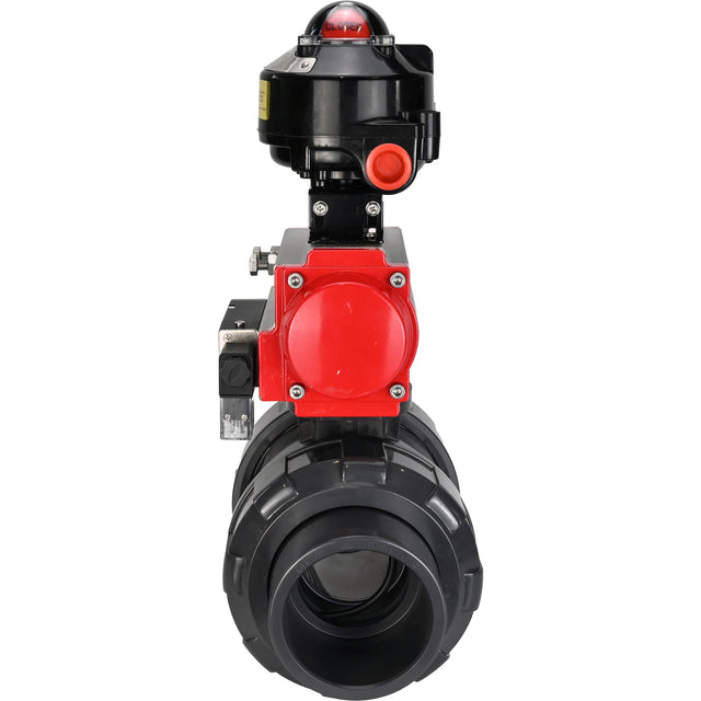 Ball valves Elephant BV4242E-FP-GRM-ISO, body material - UPVC, ball material - UPVC, seal - EPDM, with pneumatic actuator double action PA-DA, pneumatic distributor 4M310-08 24V and LSU APL-510N EX