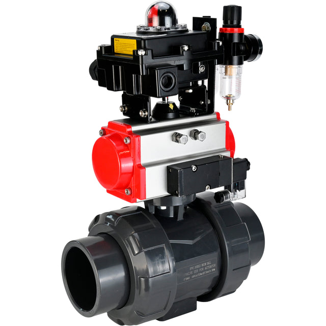 Ball valves Elephant BV4242E-FP-GRM-ISO, body material - UPVC, ball material - UPVC, seal - EPDM, with pneumatic actuator double action PA-DA, pneumatic distributor 4M310-08 24V, LSU APL-410N EX and ATU AFC2000