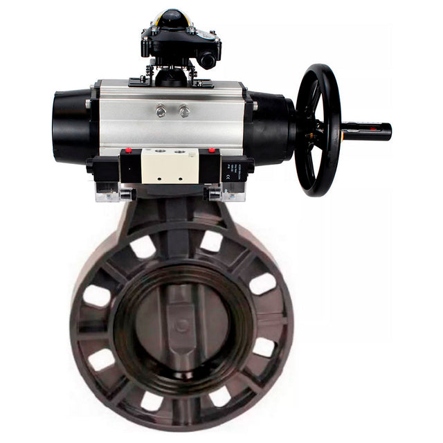 Butterfly valves Elephant WBV4242E-2W-Fb-ISO, body material - UPVC, disc material - UPVC, seal - EPDM, with pneumatic actuator double action PA-DA-105-1, pneumatic distributor 4V320-10 220V and LSU APL-210N