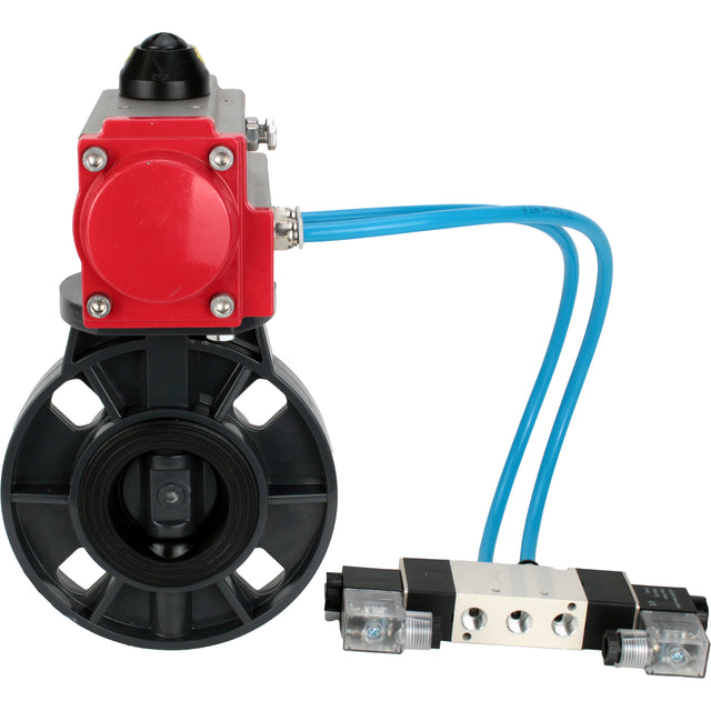 Butterfly valves Elephant WBV4242E-2W-Fb-ISO, body material - UPVC, disc material - UPVC, seal - EPDM, with pneumatic actuator double action PA-DA and pneumatic distributor 4V320-08 220V