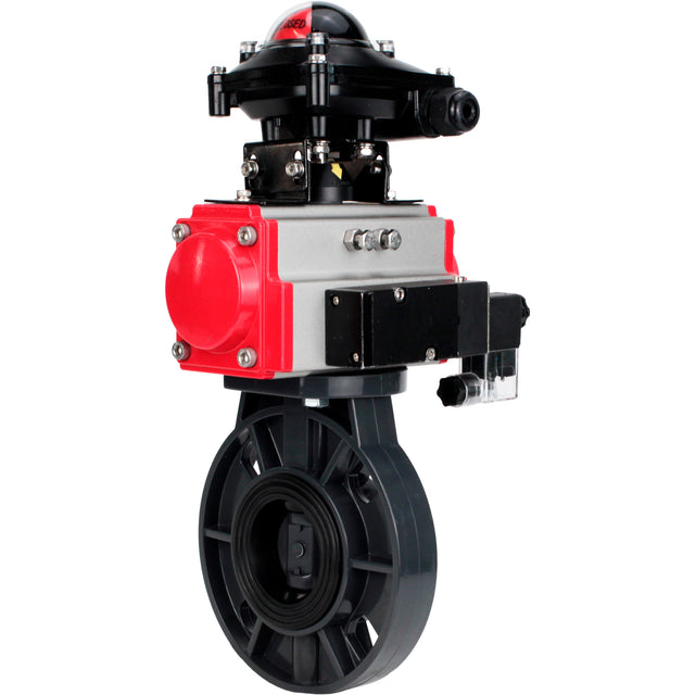 Butterfly valves Elephant WBV4242E-2W-Fb-ISO, body material - UPVC, disc material - UPVC, seal - EPDM, with pneumatic actuator double action PA-DA, pneumatic distributor 4M310-08 NAMUR 220V and LSU APL-210N