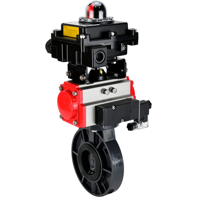 Butterfly valves Elephant WBV4242E-2W-Fb-ISO, body material - UPVC, disc material - UPVC, seal - EPDM, with pneumatic actuator double action PA-DA, pneumatic distributor 4M310-08 NAMUR 220V and LSU APL-410N EX