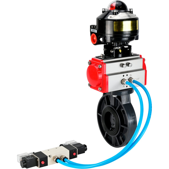 Butterfly valves Elephant WBV4242E-2W-Fb-ISO, body material - UPVC, disc material - UPVC, seal - EPDM, with pneumatic actuator double action PA-DA, pneumatic distributor 4V320-08 220V and LSU APL-510N EX