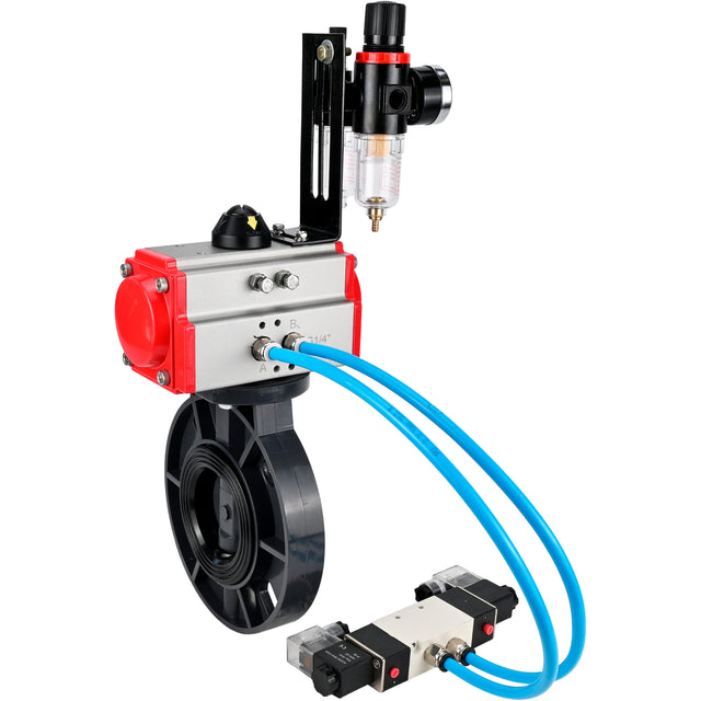Butterfly valves Elephant WBV4242E-2W-Fb-ISO, body material - UPVC, disc material - UPVC, seal - EPDM, with pneumatic actuator double action PA-DA, pneumatic distributor 4V320-10 220V and ATU AFC2000