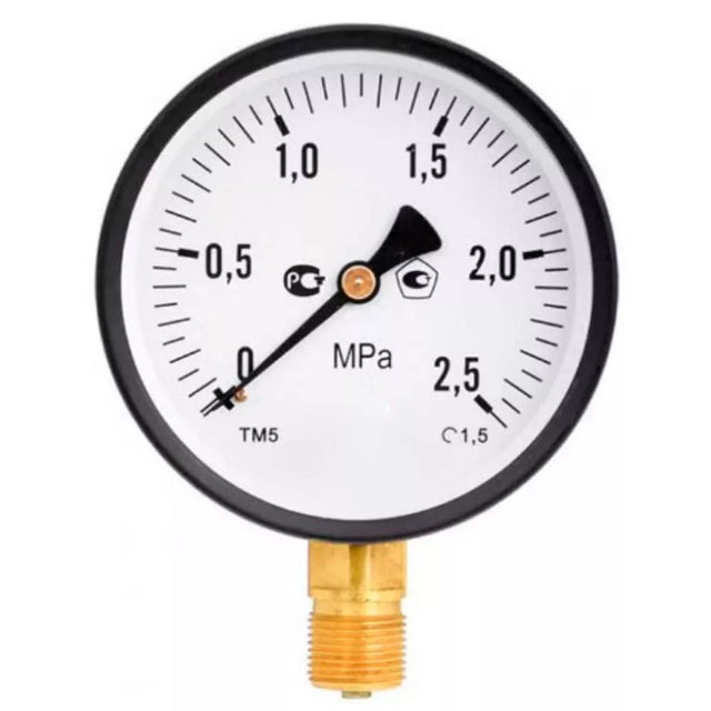 Le manomètre radial est conçu pour mesurer la surpression des fluides non cristallisants et non agressifs pour les alliages de cuivre. Le principe de fonctionnement des manomètres est basé sur la dépendance de la déformation de l'élément sensible à la pression mesurée. Un tube de Bourdon est utilisé comme élément de détection. Sous l'influence de la pression mesurée, l'extrémité libre du tube est déplacée par un mécanisme spécial et fait tourner la flèche du manomètre.