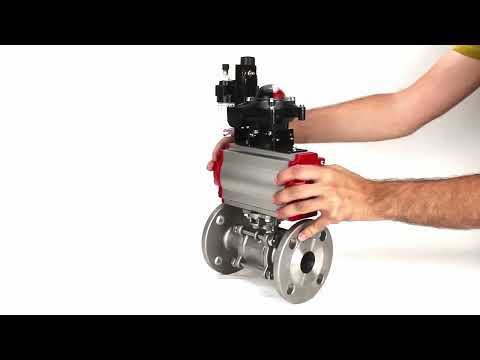 Robinet à boisseau sphérique en acier inoxydable Elephant ksfpt-304-180-sa-4m310-24v-apl210n-afc2000, matériau du corps - acier inoxydable AISI 304, matériau de la bille - acier inoxydable AISI 304, joint - PTFE, actionné par actionneur pneumatique