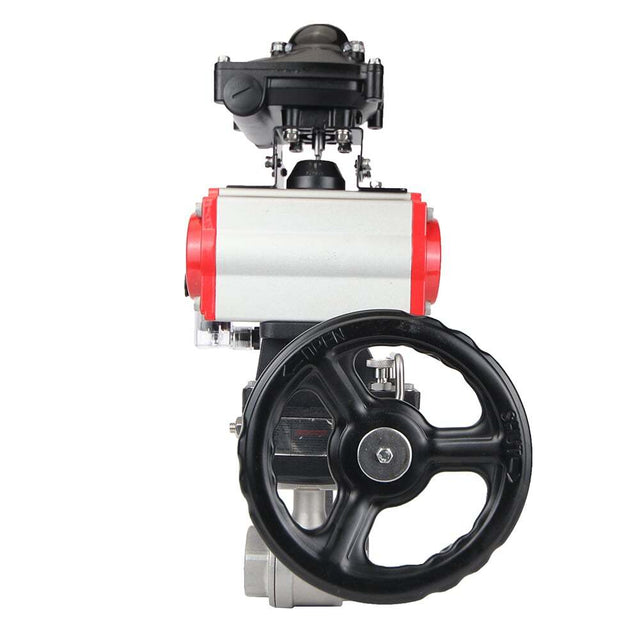 Robinet à boisseau sphérique en acier inoxydable Elephant kshmp316-elephant-da-4m310-24v-apl-210n-hdm, matériau du corps - acier inoxydable AISI 316, matériau de la bille - acier inoxydable AISI 316, joint - PTFE, actionné par actionneur pneumatique