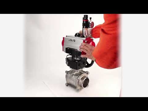 Robinet à boisseau sphérique en acier inoxydable Elephant kshpp-316200-da-4m310-110/220-hdm-bpv, matériau du corps - acier inoxydable AISI 316, matériau de la bille - acier inoxydable AISI 316, joint - PTFE, actionné par actionneur pneumatique