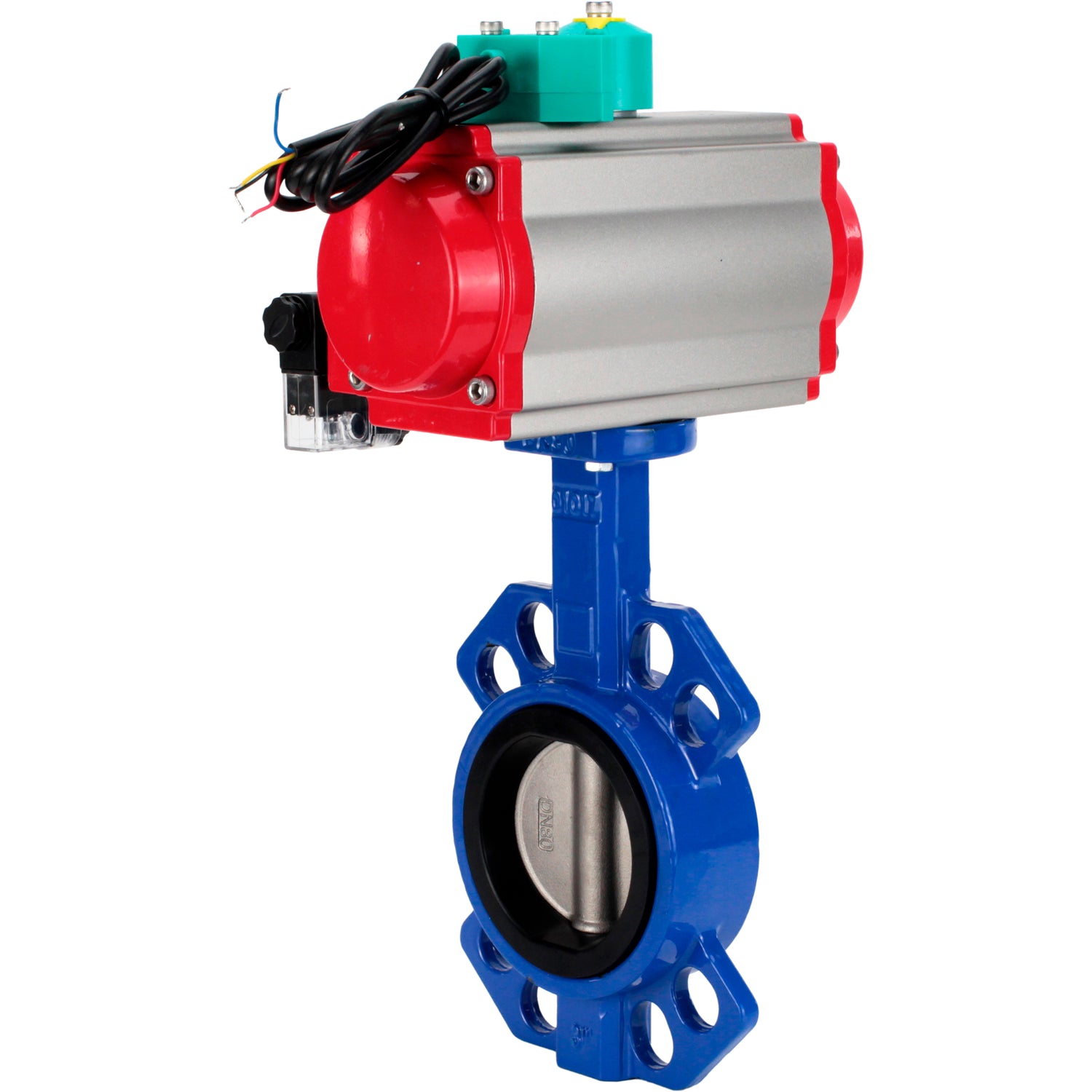Water Butterfly Valve Elephant WBV1432N-2W-Fb-H DN40-300 16 bar body - GGG50 cast iron, disc - 316L stainless steel, seal - NBR, with pneumatic actuator PA-DA-XXX, pneumatic distributor 4M310-08 NAMUR 24V and ALS200D magnetic switch
