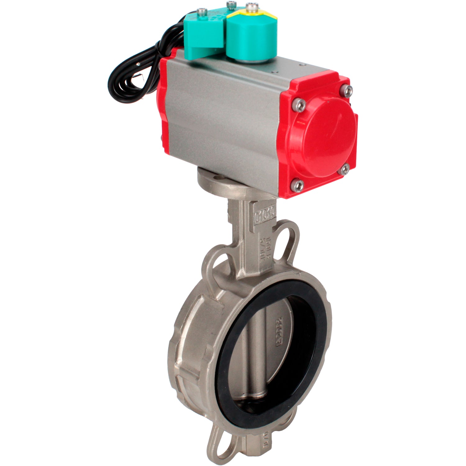 Water Butterfly Valve Elephant WBV3232V-2W-Fb-H DN50-300 16 bar case - 316L stainless steel, disc - 316L stainless steel, seal - Viton, with pneumatic actuator PA-DA-XXX, pneumatic distributor 4M310-08 NAMUR 24V and ALS200D magnetic switch