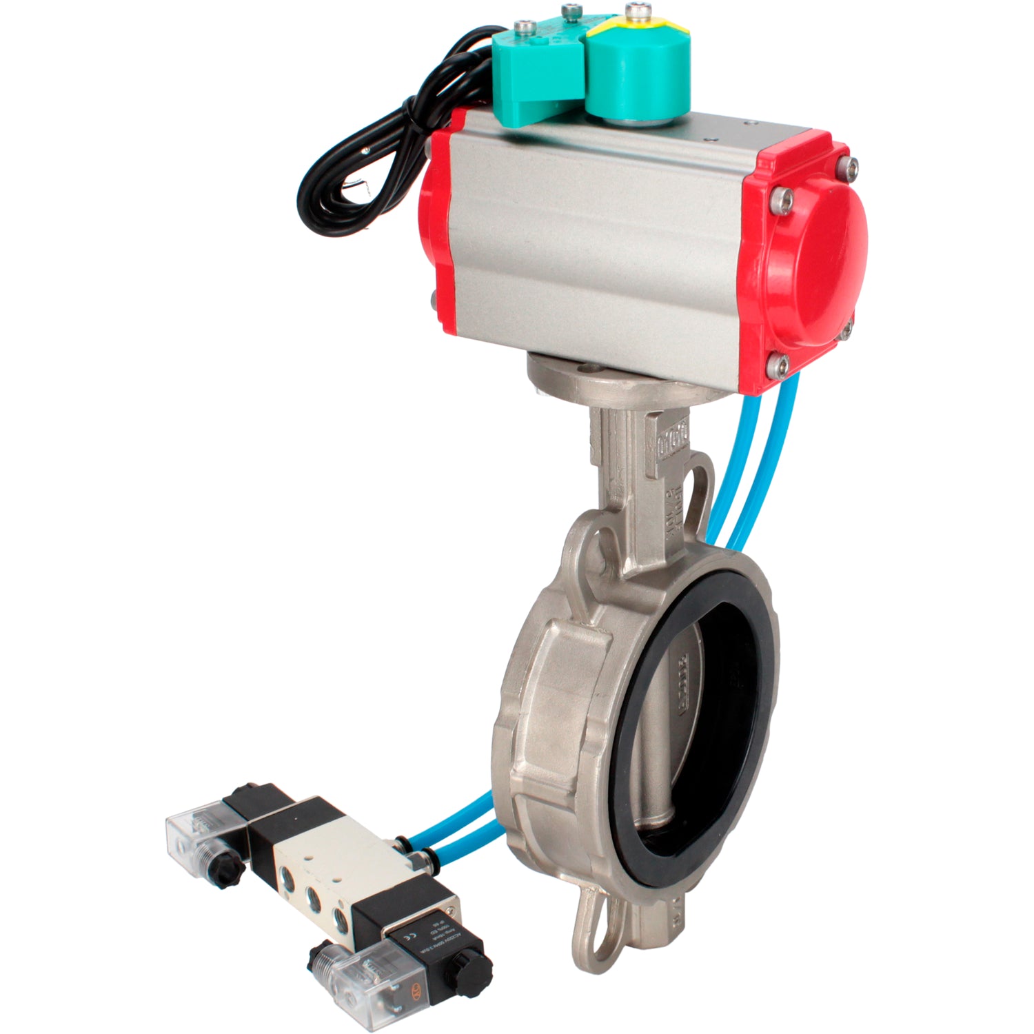 Water Butterfly Valve Elephant WBV3232V-2W-Fb-H DN50-300 16 bar case - 316L stainless steel, disc - 316L stainless steel, seal - Viton, with pneumatic actuator PA-DA-XXX, pneumatic distributor 4V320-10 220V and ALS200D magnetic switch