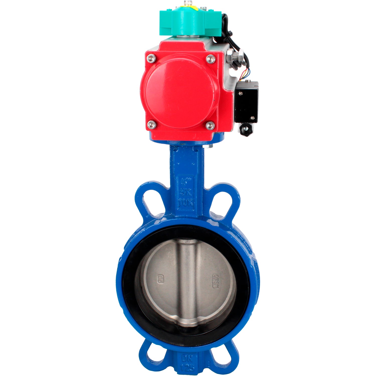 Water Butterfly Valve Elephant WBV3432V-2W-Fb-H DN50-300 16 bar body - WCB carbon steel, disc - 316L stainless steel, seal - Viton, with pneumatic actuator PA-DA-XXX, pneumatic distributor 4M310-08 NAMUR 24V and ALS200D magnetic switch